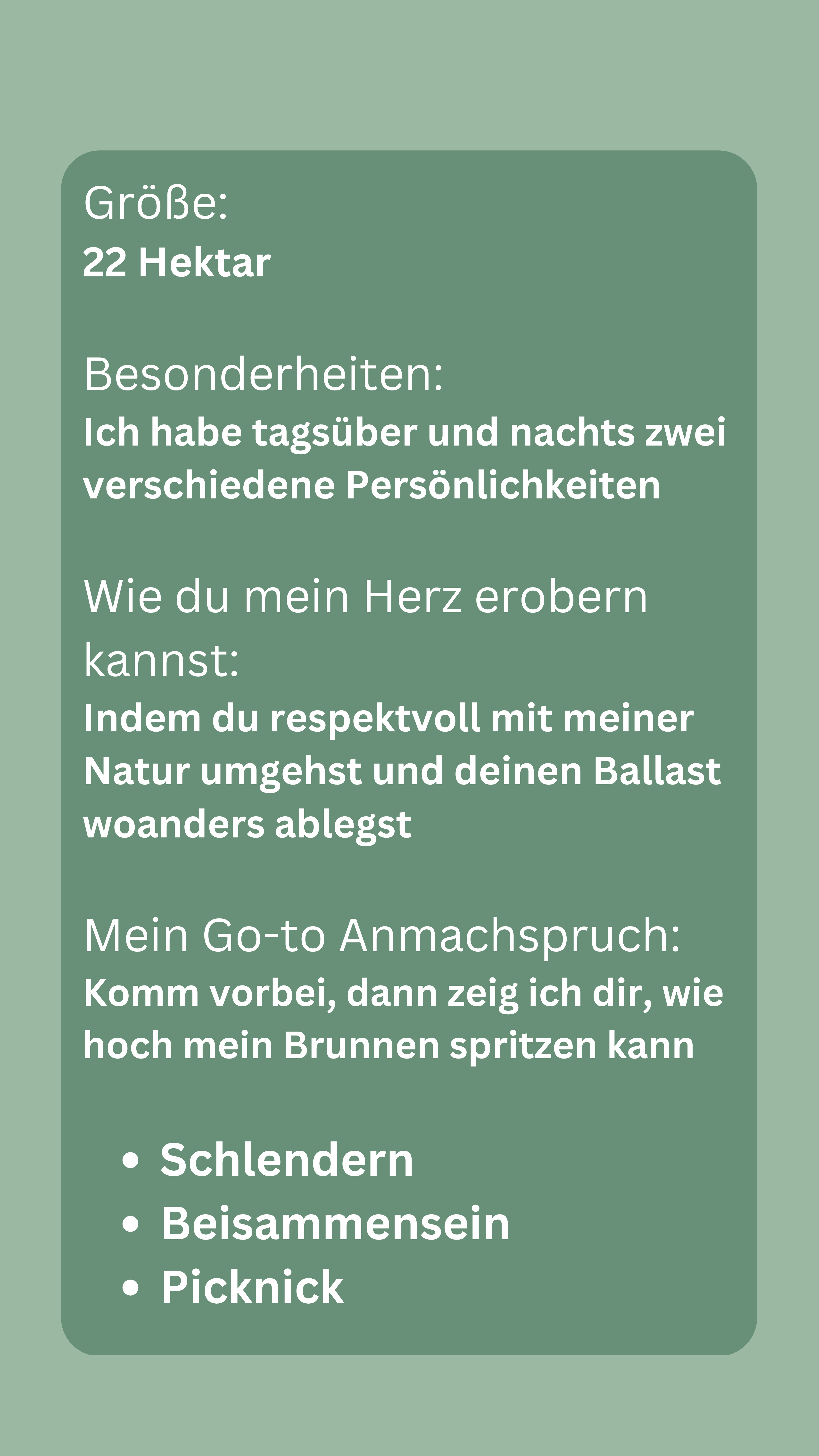 Schwerfällig lasse ich mich auf eine Bank fallen, nehme Gesprächsfetzen der Menschen um mich herum wahr. Kinder, die kreischend herumtollen, zwei junge Menschen, die Hand in Hand vorbeispazieren und sich verliebt anlächeln, ein älteres Ehepaar, das über die täglichen Hürden des Lebens philosophiert. Ich lasse die Gedanken schweifen und schreibe in mein Journal: Der Stadtpark ist viel mehr als eine Grünfläche in einer Großstadt. Er ist ein Ort der Begegnung und Vielfältigkeit. Hier komme ich gerne wieder her!