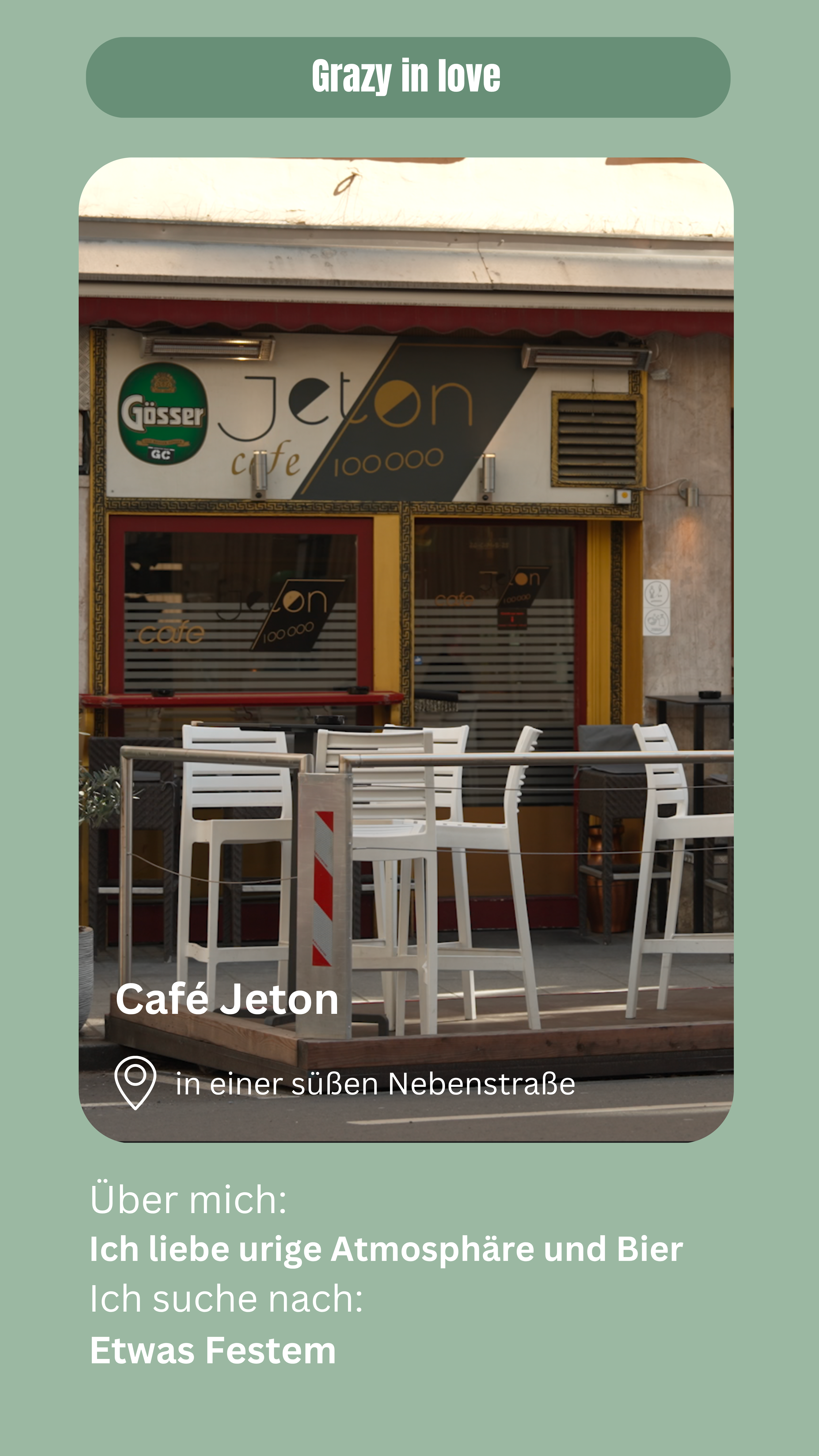 Die alte Tür knarzt leise, als ich sie öffne. Tageslicht fällt in den Raum und mischt sich mit dem Nachklang der letzten Nacht – ein Hauch Kneipenstimmung liegt noch in der Luft. Das Café Jeton ist klein genug, um seinen Charme zu bewahren, aber groß genug, um sich darin verlieren zu können.