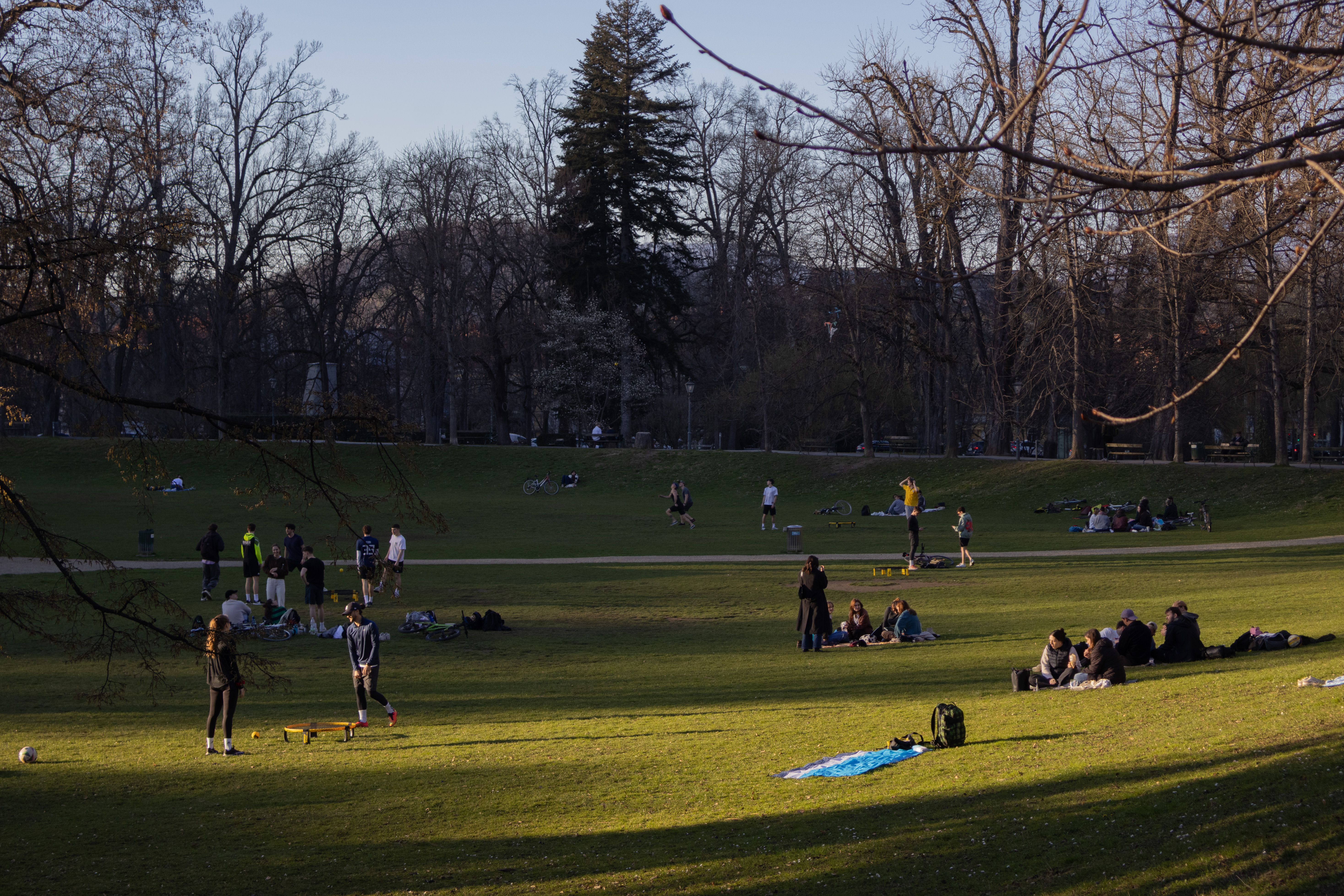 Mit jedem Schritt über den Zebrastreifen, weg von der lauten Stadt, wird der Lärm der quietschenden Autoreifen und schrillen Fahrradklingeln weniger. Stattdessen macht sich Ruhe breit. Vogelgezwitscher dringt aus den Bäumen. Im Teich quaken Enten, die von zwei Senioren gefüttert werden. Die Sonne strahlt auf eine Gruppe Jugendlicher, die sich die Zeit mit Ballspielen vertreibt und genüsslich aus einer Bierdose trinkt.