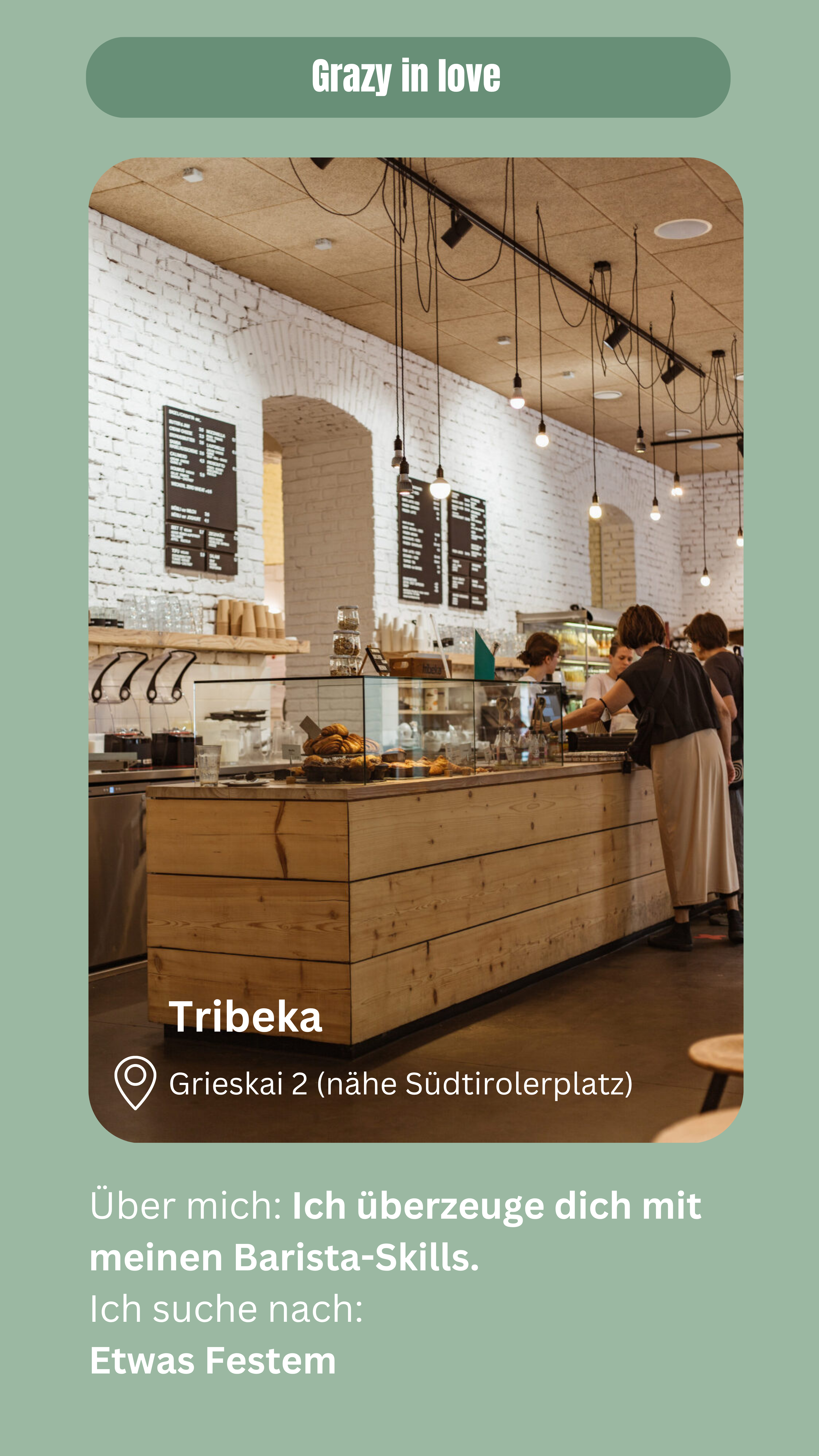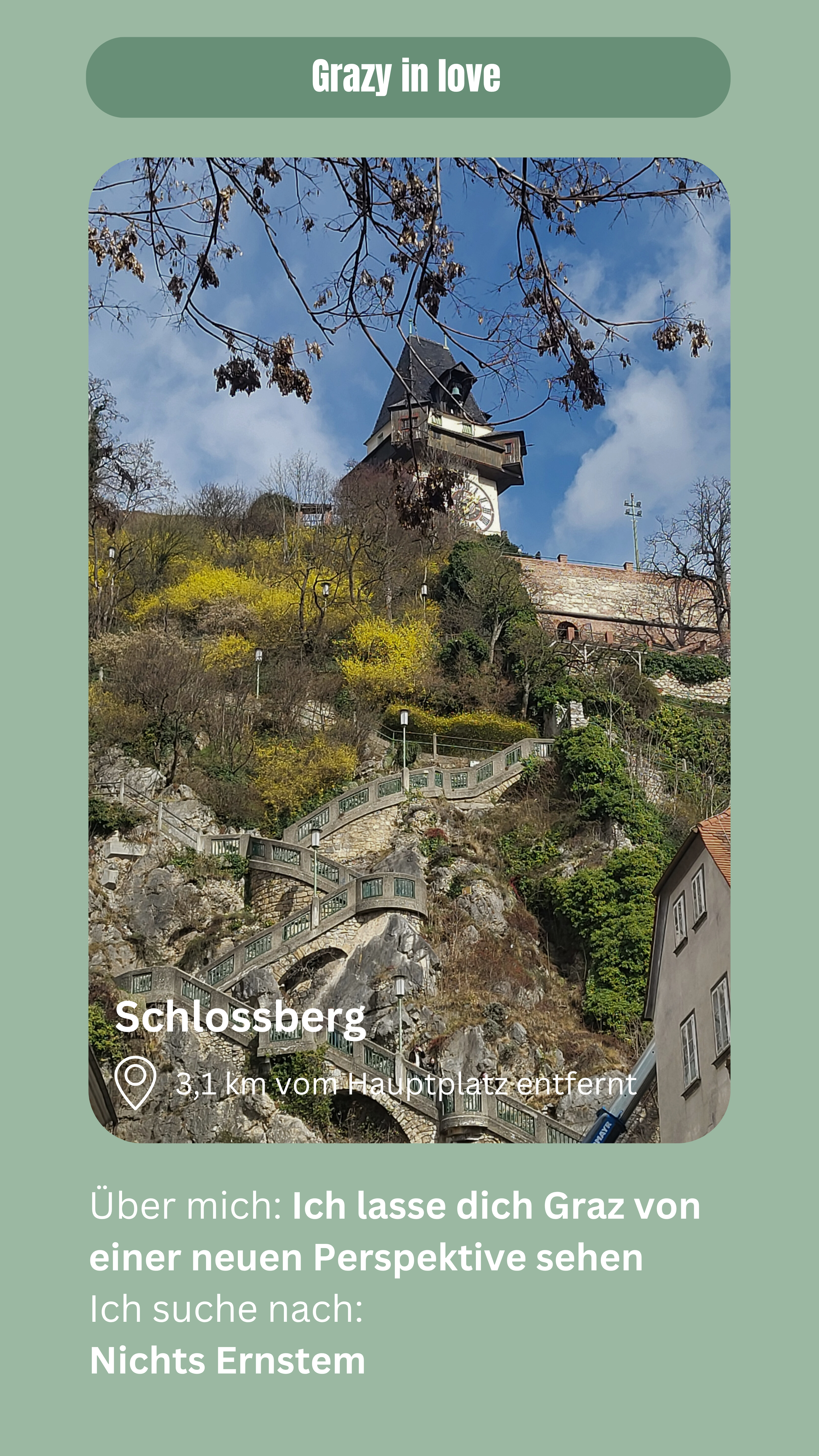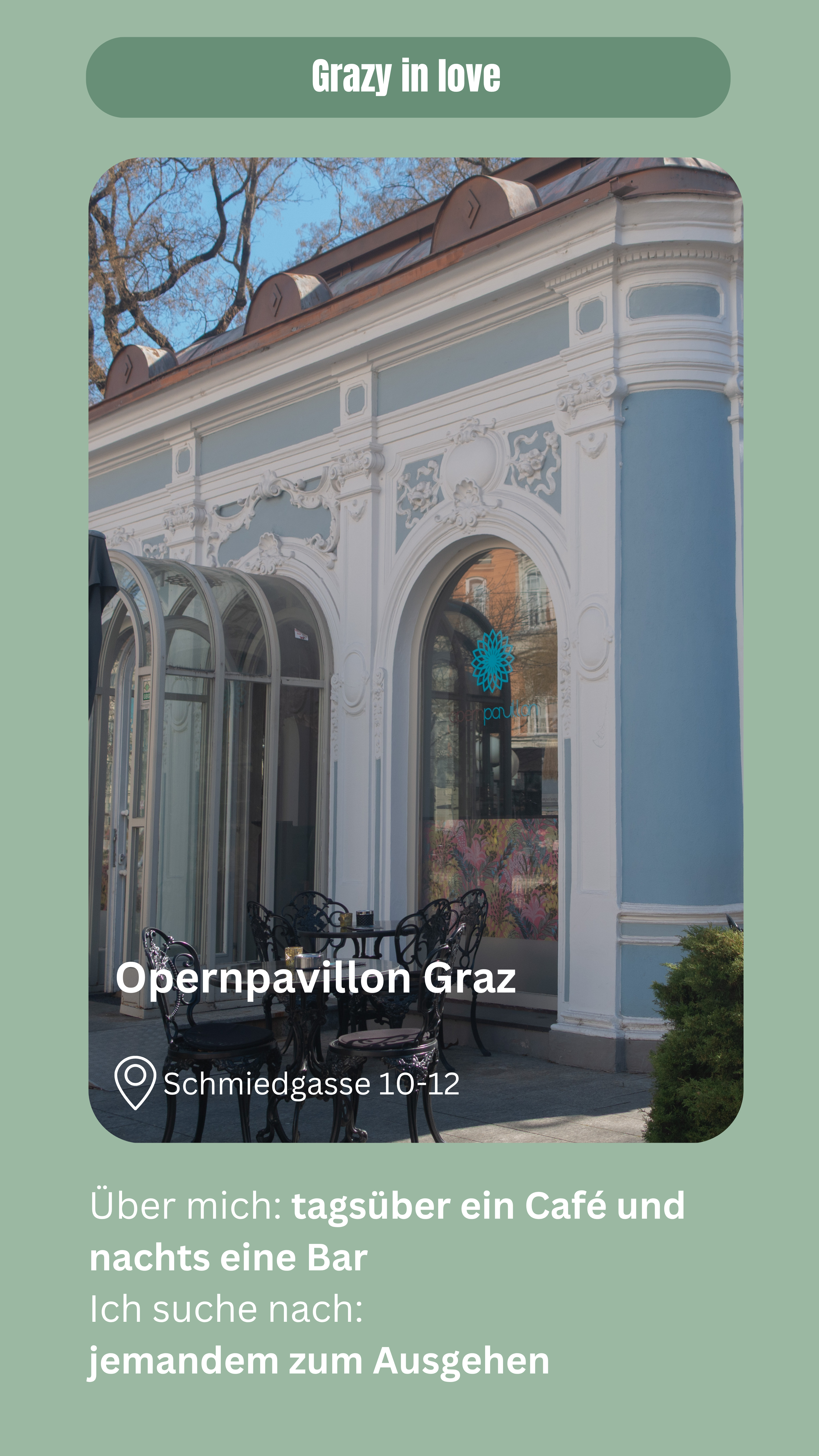 Auf dieser Karte siehst du die Orte, an denen Luise Matches hat! Scrolle weiter, um sie auf ihren Dates durch Graz zu begleiten und zu sehen, um welche Orte es sich handelt!