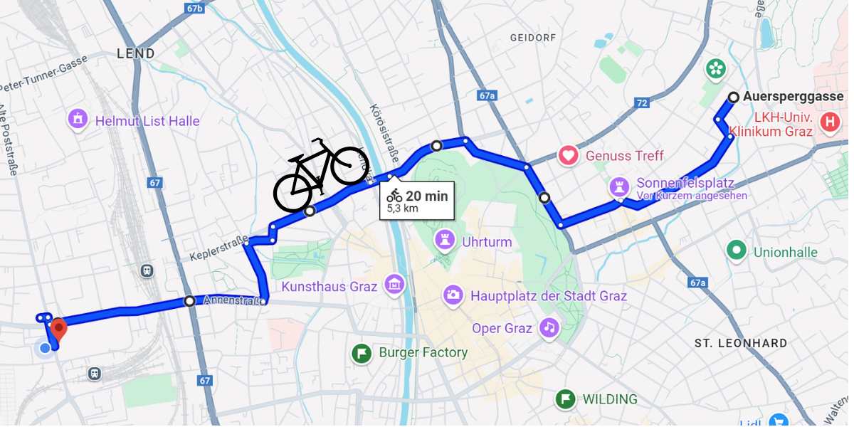 Für unser Projekt, „Stadtgeschichten aus Graz“, wollten wir keine trockene Abhandlung über den Radverkehr und den Ausbau der Radinfrastruktur schreiben – obwohl dies in Graz ein heiß diskutiertes Thema ist. Stattdessen haben wir uns gefragt: Wie würde die Stadt wohl aus der Perspektive eines Fahrrads aussehen?