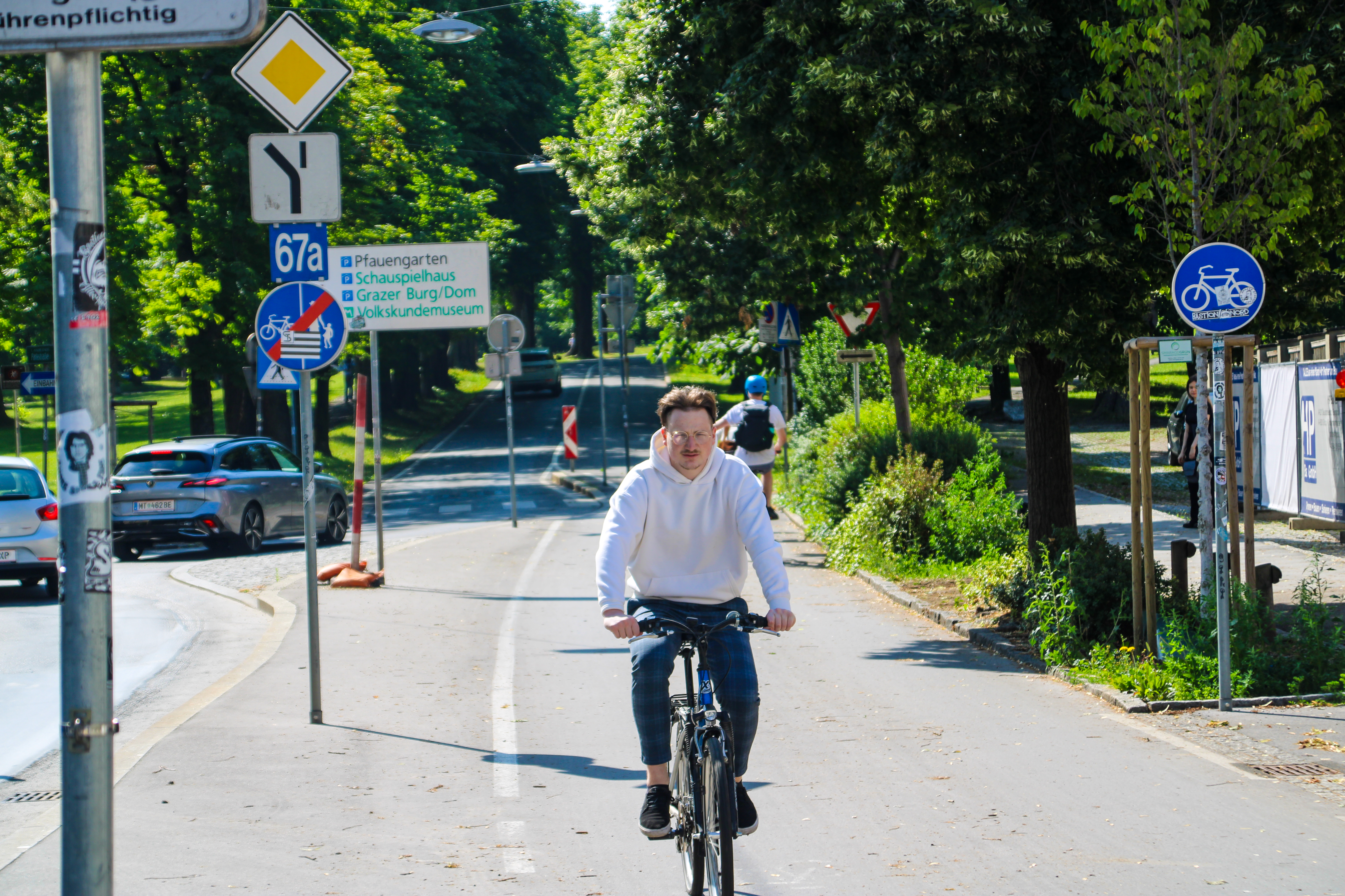 Graz bemüht sich inständig, eine Fahrradstadt zu sein. So verkaufen es die Politiker zumindest nach außen. Trotz nötiger Infrastruktur sind die Zahlen bestehender Fahrer:innen niedriger als man vielleicht vermuten würde. Mit der Freigabe von 100 Millionen Euro aus dem steirischen Landesbudget 2016 wollte die damalige Regierung die Bevölkerung durch erweiterte Infrastruktur zum Radeln begeistern. Weitere Unterstützer des Ausbaus finden sich im Grazer Gemeinderat und in der Radlobby ARGUS Steiermark. Um mehr Daten bezüglich der tatsächlichen Grazer auf dem Rad zu erhalten, stehen in der Innenstadt mehrere Radzählstellen an Hauptverkehrsknoten. Diese erfüllen durch ihre Anzeige der täglichen Fahrer aber definitiv auch einen Image-Zweck.