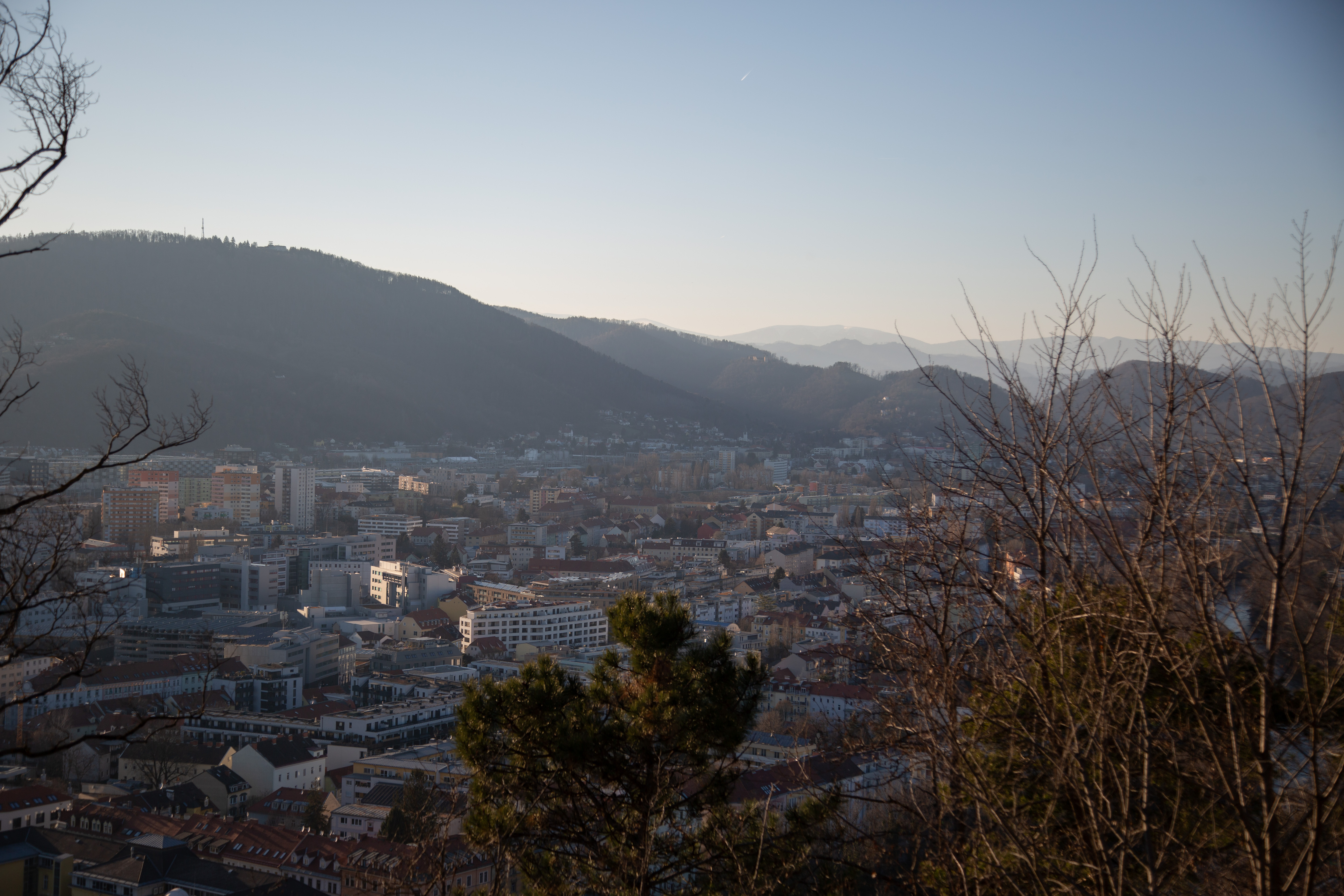 Ein Blick in die Weite. Der Klang des Vogelgezwitschers zwischen fernen Autos und dem Gewusel der Stadt. Hoch oben. Häuser und Wohnungen umgeben von emporragenden Bergen. Graz, so klein und unbedeutend. Wie unsere Ängste und Sorgen in der weiten Welt.