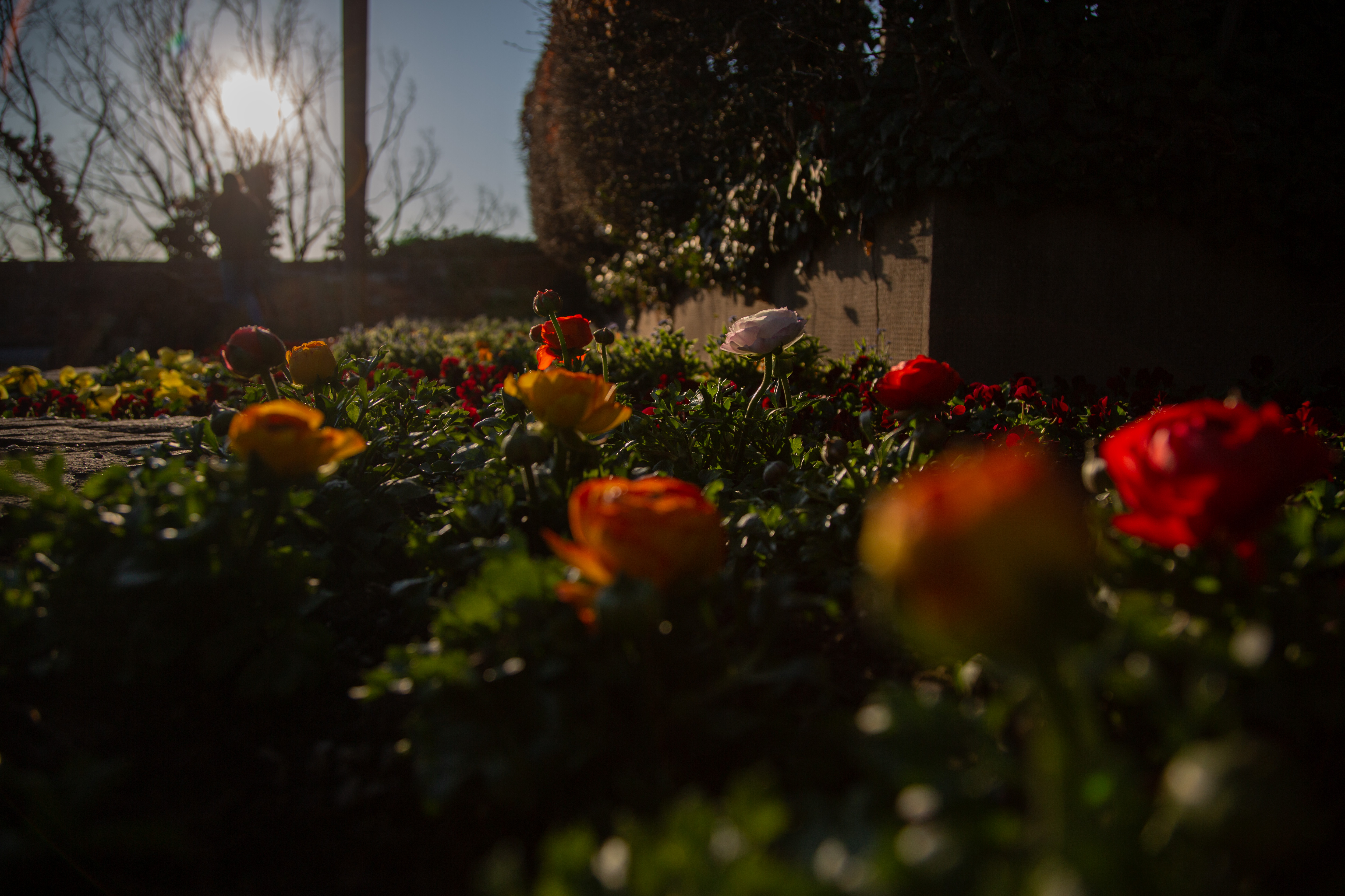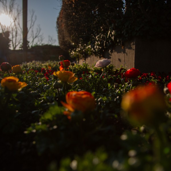Die letzten Sonnenstrahlen auf den Frühlingsblumen. Eine neben der anderen lauschen sie den Klängen des abendlichen Gelächters. Irgendwie ansteckend. Gläser klirren und wollen mehr Inhalt. Ein leichter Windzug streicht über die Rosen. Sie tanzen.