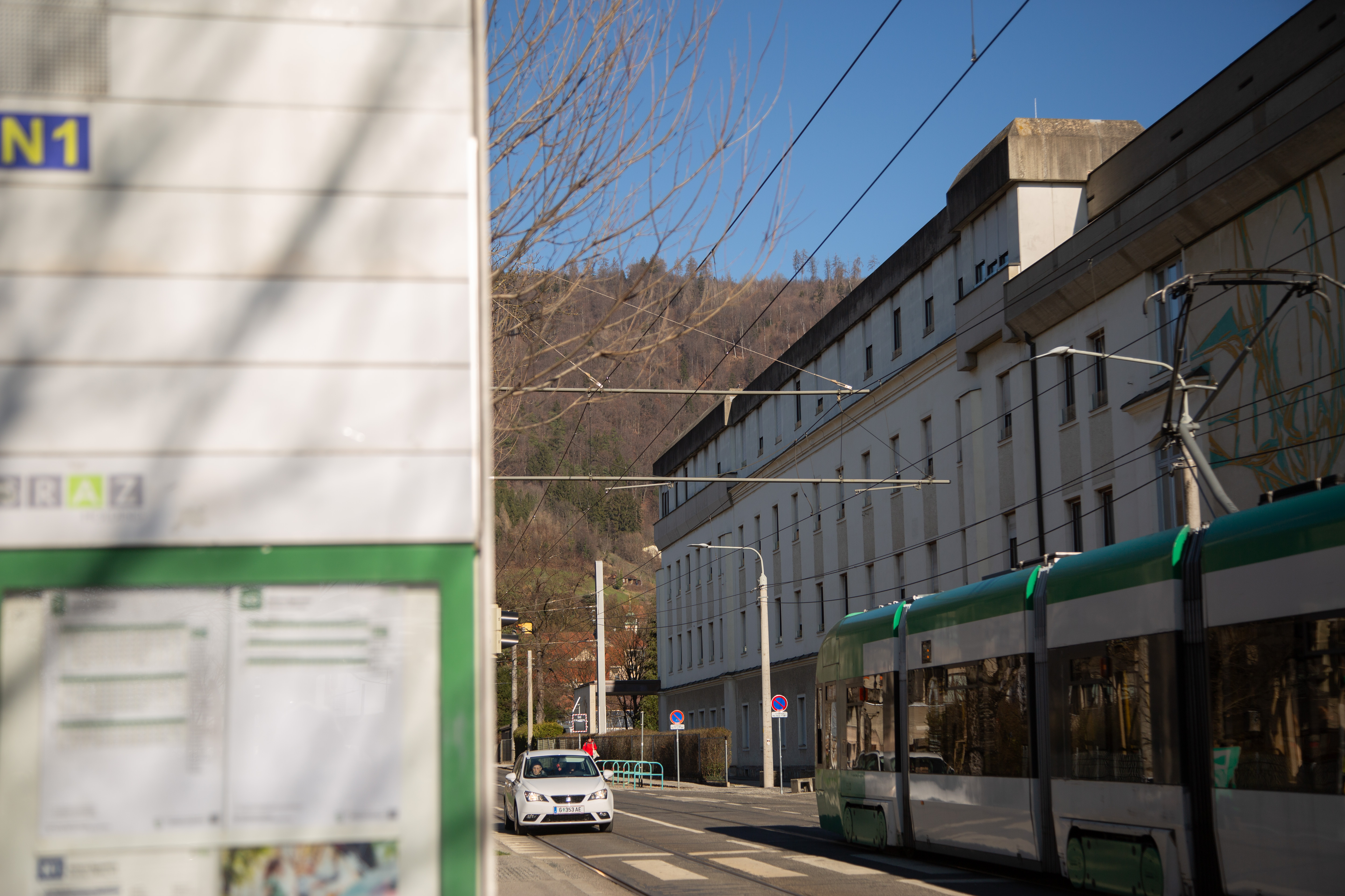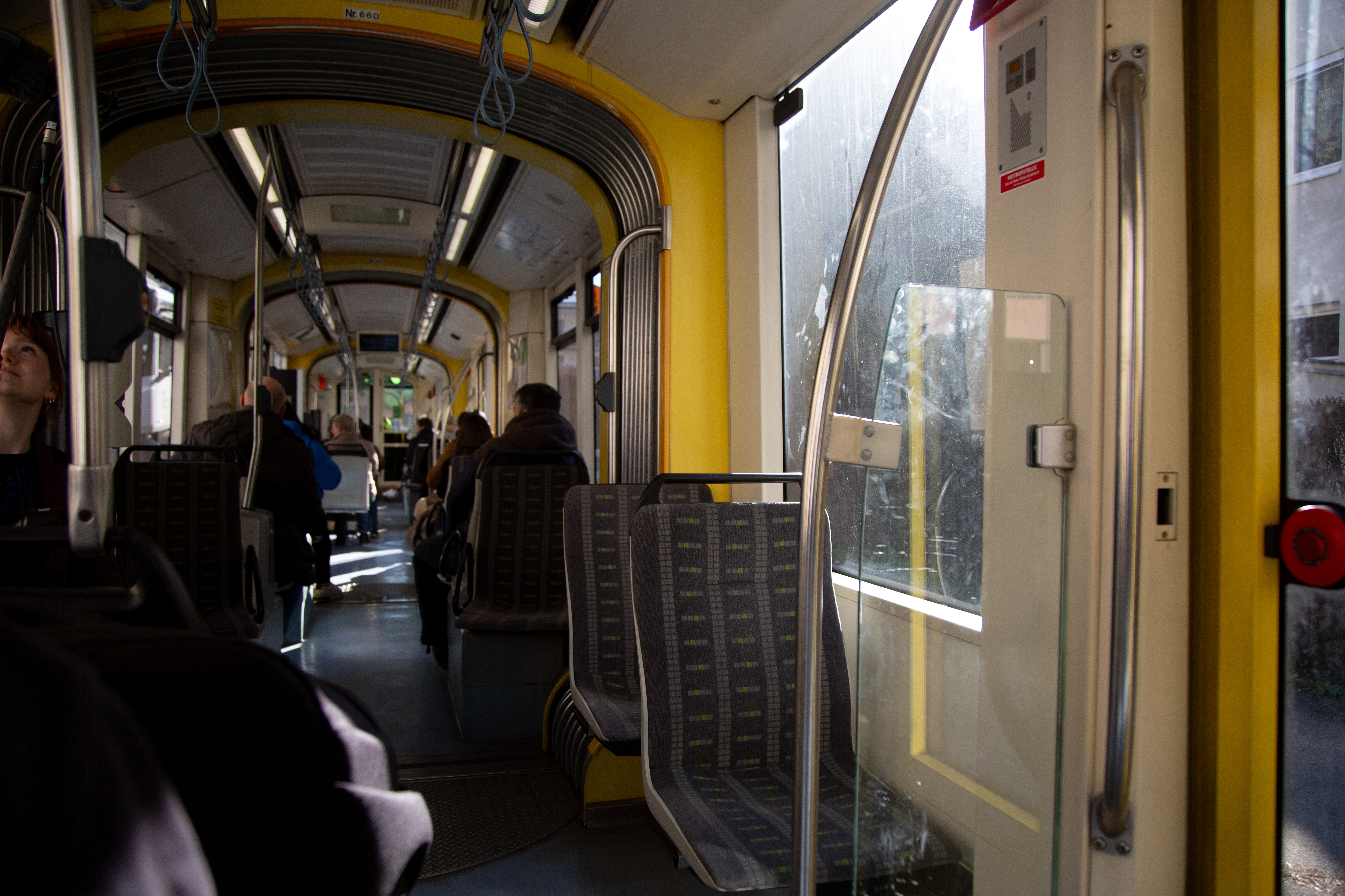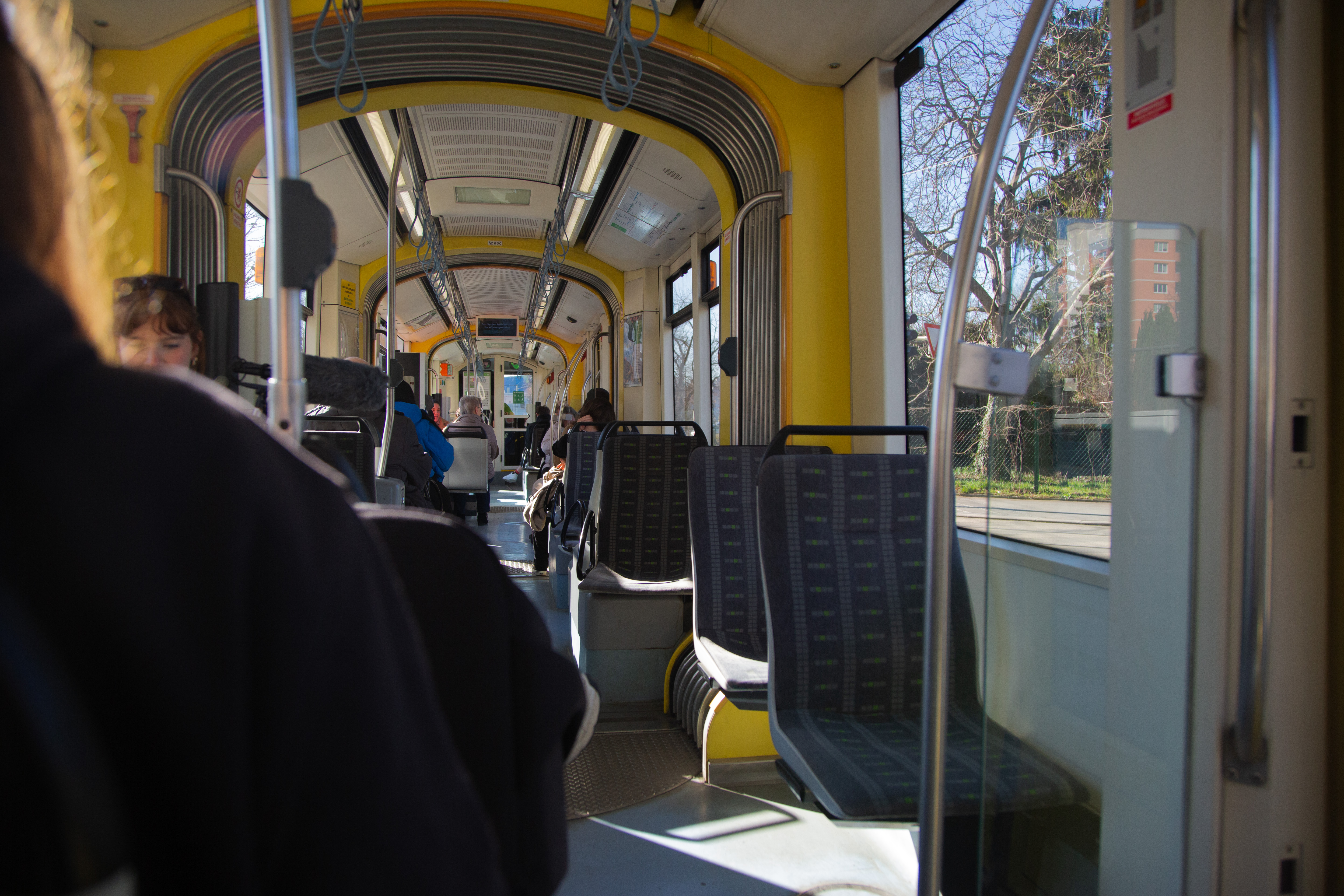 Aussteigen vor Einsteigen! Die Türen piepen. Schnell zu einer Halteschlaufe greifen. Los geht's! Ruckeln, Kurve, Bremsung. Das grüne H auf gelbem Hintergrund schimmert in der Ferne. Und eine Melodie ertönt: Die ersten Noten der steirischen Landeshymne erklingen, bevor eine Frauenstimme die nächste Haltestelle verkündet.
