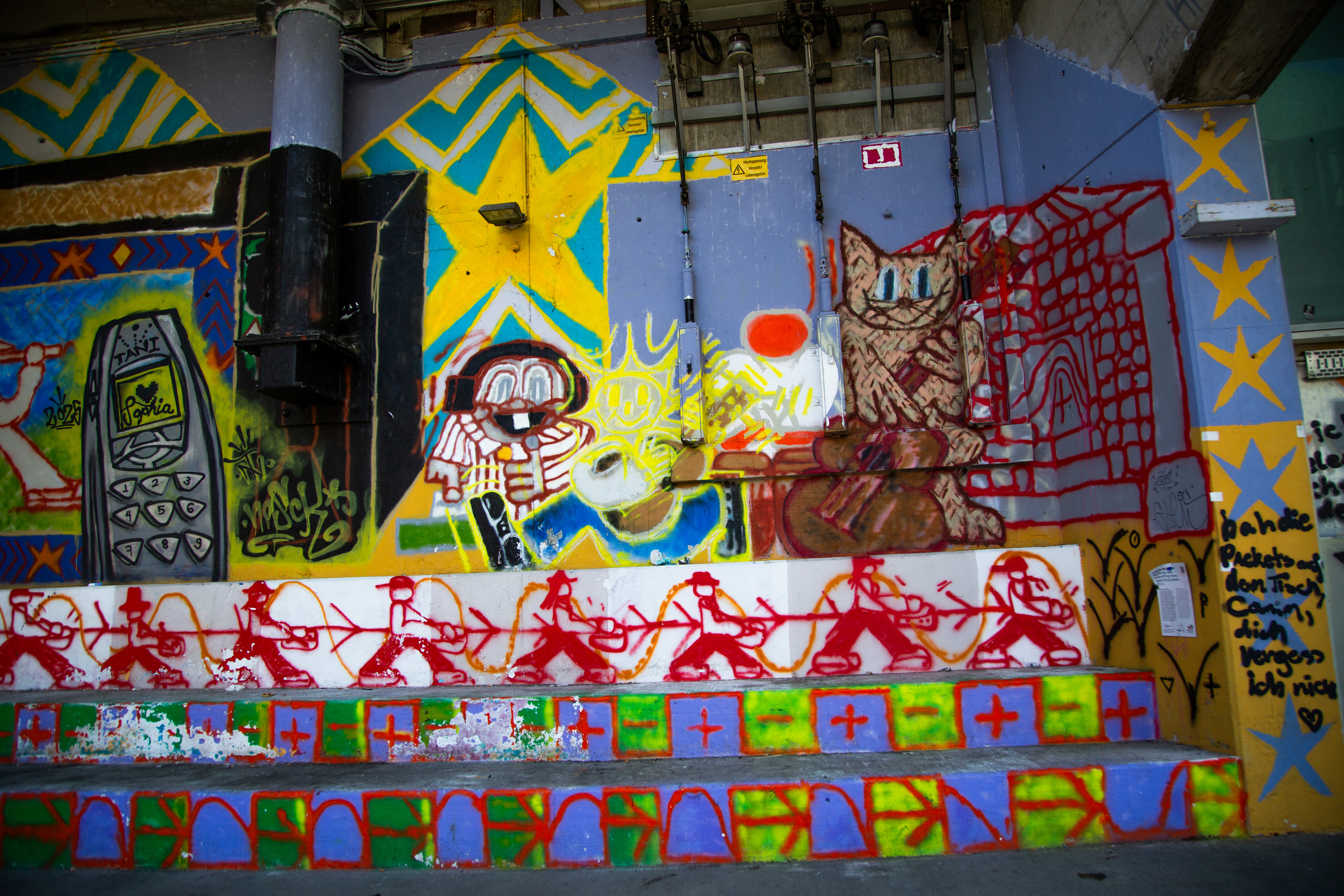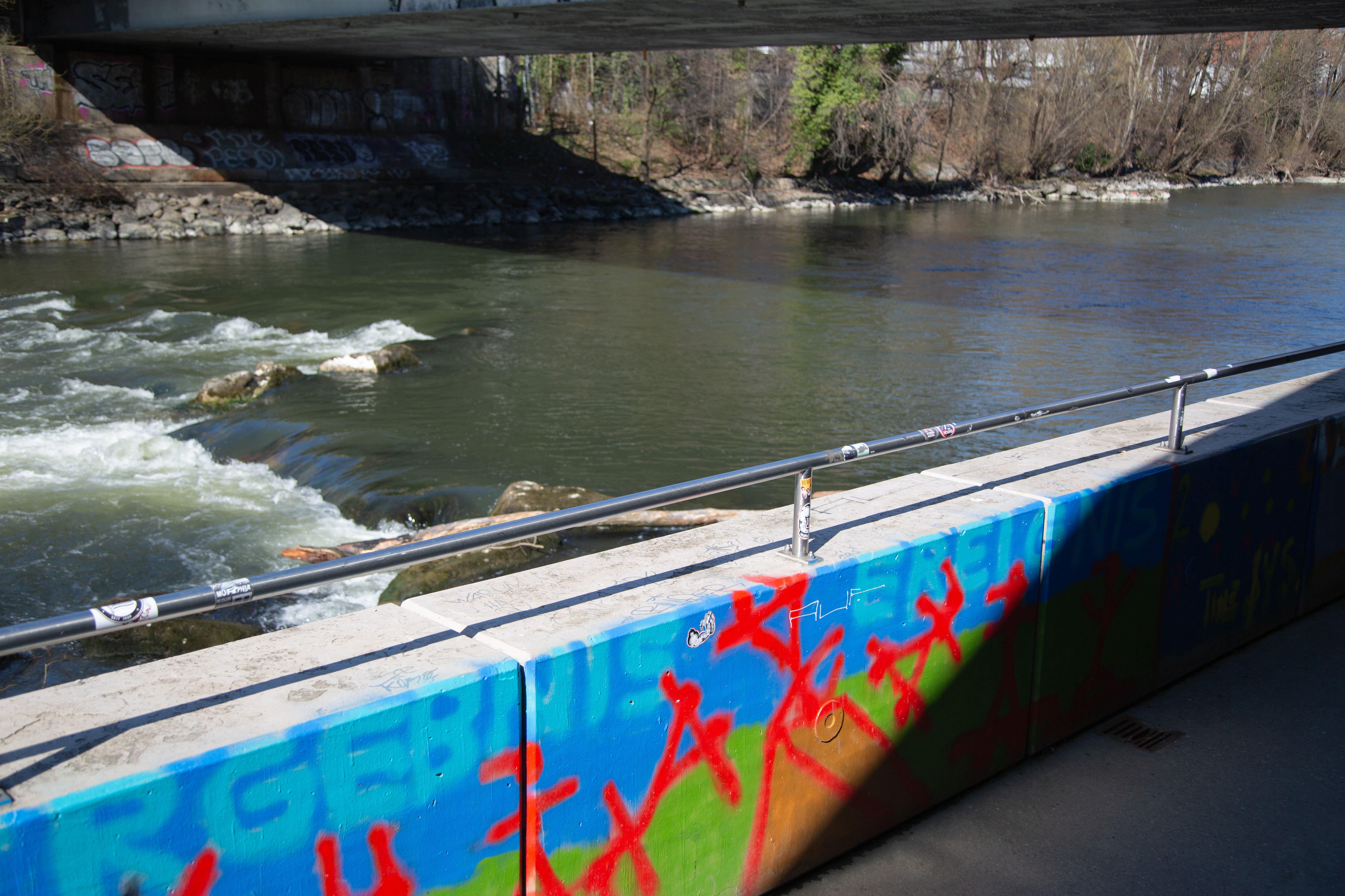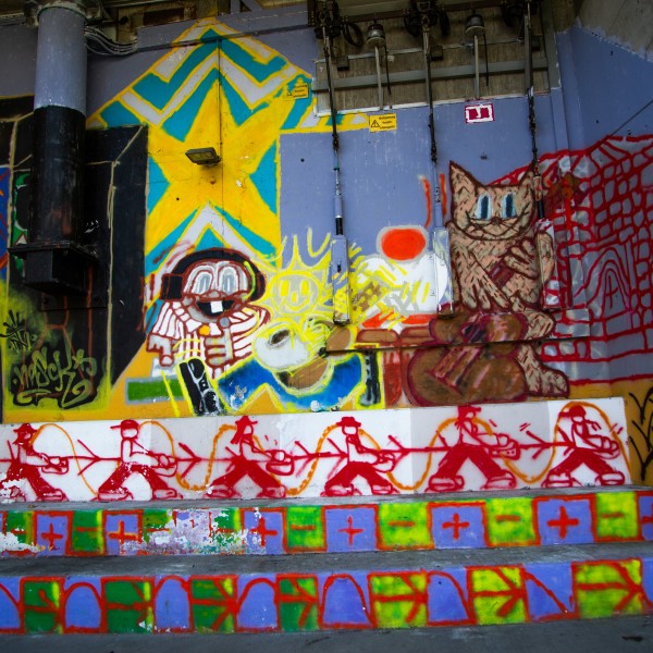 Ein ohrenbetäubendes Rauschen hallt von den Steinwänden wider. Wilde Natur und urbane Kreativität vermischen sich zu einem kraft- wie friedvollen Augenblick. Ein einsamer Sonnenstrahl taucht rätselhafte Figuren in goldenes Licht und lässt die Zeit stillstehen.