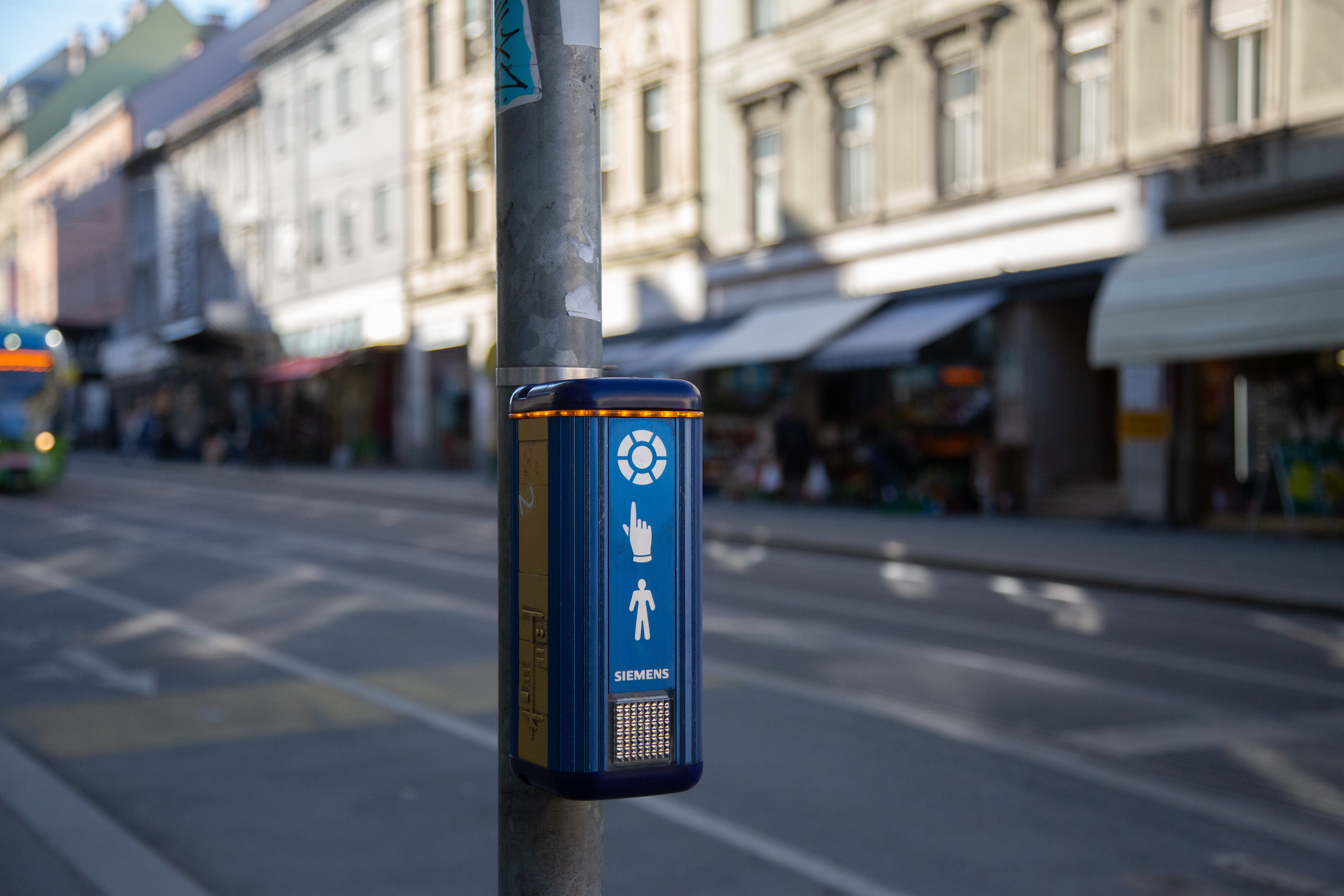 Der blaue Kasten gibt einen „Pieps“ von sich, als der Knopf an seiner Unterseite gedrückt wird. Gelbes Blinken. Rot. Motoren verstummen. „Tuck, tuck, tuck.“ Die Stille rückt die Tonfolge der Ampel in den Vordergrund. Schneller. Der Startschuss für die Fußgänger.